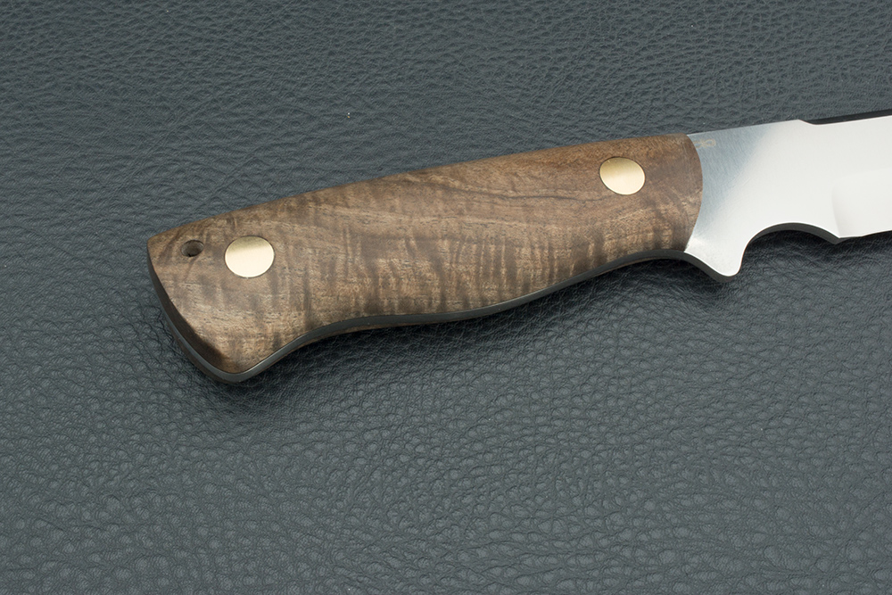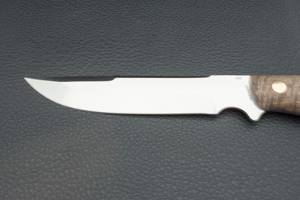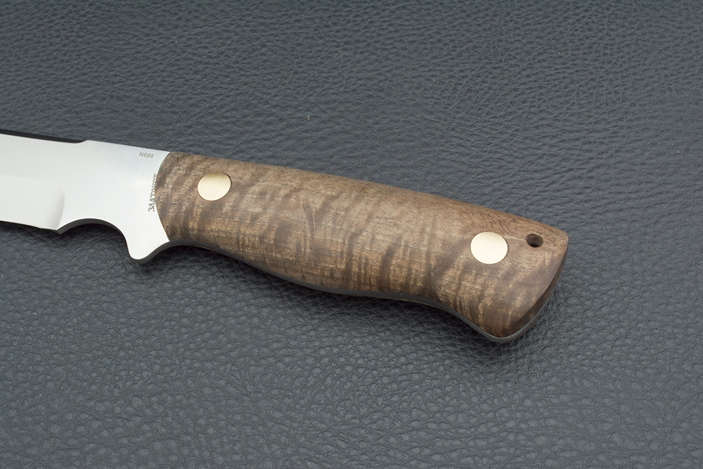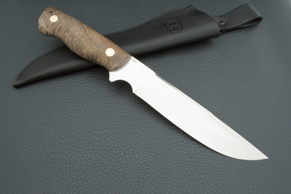 «Рифей» – серьезный нож с массивным клинком классической формы. Очень прочный, надежный, с удачной конструкцией для широкого спектра задач. Нож обладает хорошими режущими качествами. Фальшлезвие на обухе улучшает проникающие свойства острия. Цельнометаллическая конструкция ножа имеет большой запас прочности. Подпальцевый радиус в основании клинка добавляет удобства в работе. Монтаж рукояти накладной, неразборный. Нож «Рифей» – отличный рабочий нож для охоты, похода, выживания, использования в быту и фермерском хозяйстве.